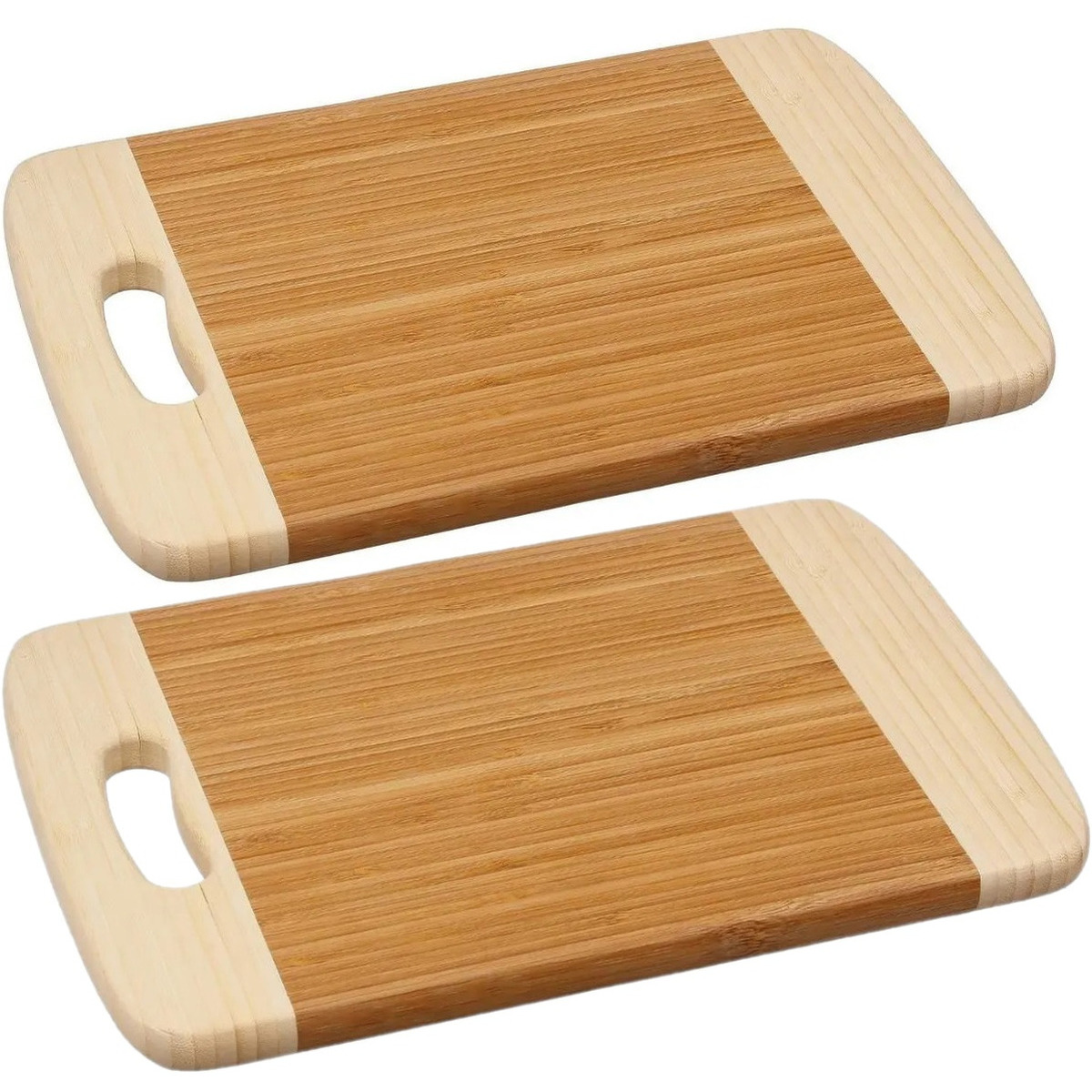 2x Stuks snijplank met handvat 30 x 20 cm van bamboe hout. Stevige houten snijplank/broodplank/serveerplank, met een handvat voor beter houvast welke u tevens kunt gebruiken om de planken aan op te hangen. Om de kwaliteit van de plank te behouden, is het aan te raden deze af en toe in te wrijven met een beetje plantaardige olie. Afmeting: ca. 30 x 20 x 2 cm. Materiaal: bamboe hout. Reinigen: hand afwas met een klein beetje mild afwasmiddel.
