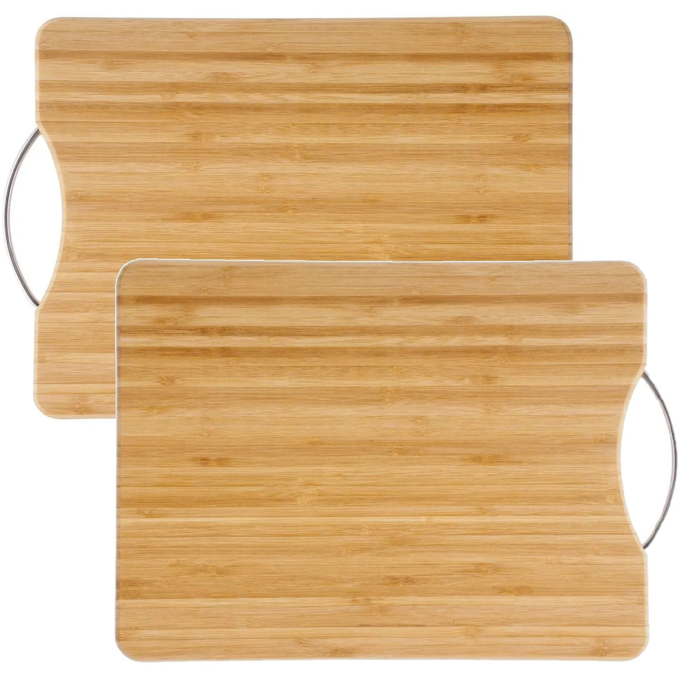 2x Stuks snijplank met metalen handvat 42 x 30 cm van bamboe hout