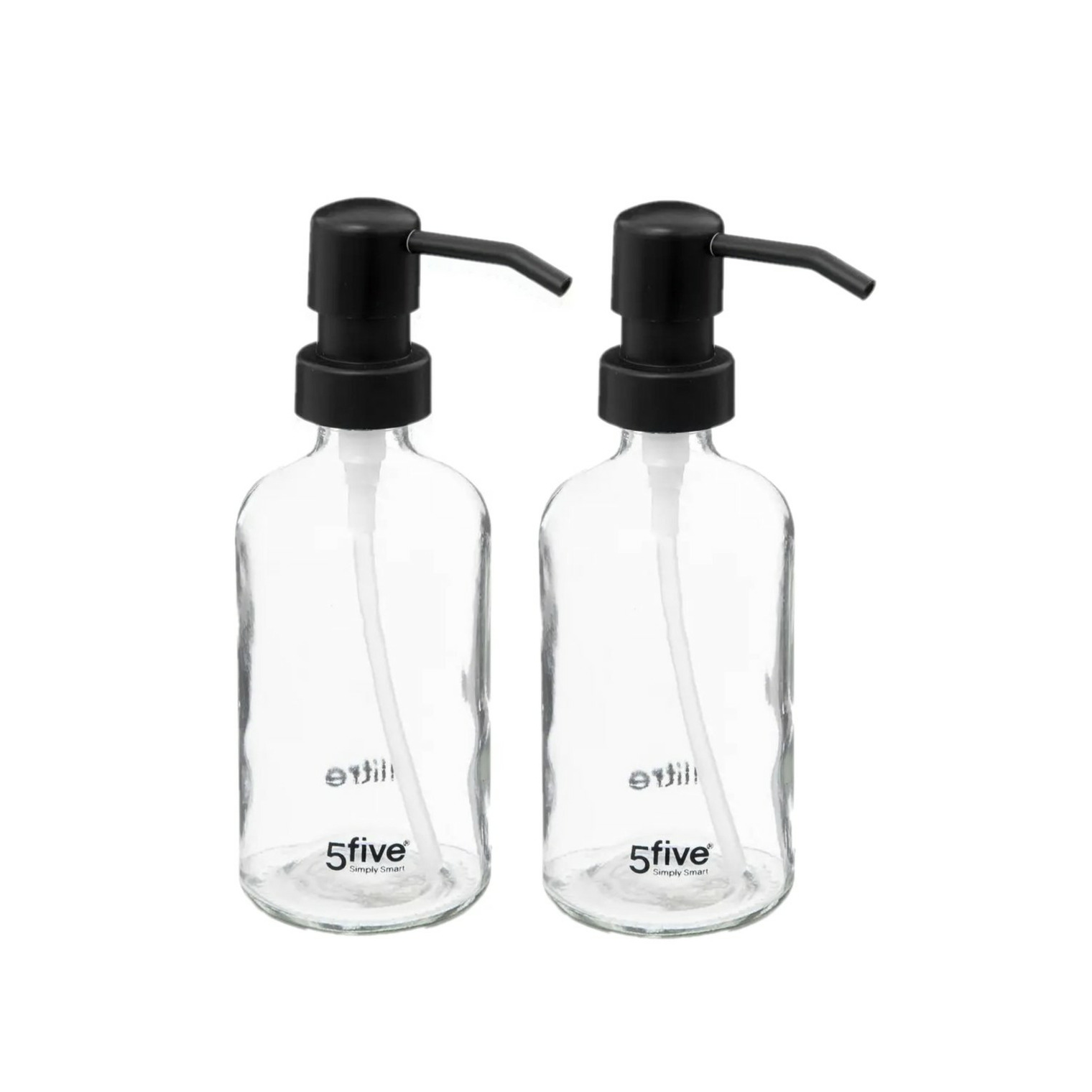 2x five zeeppompje/zeepdispenser van glas. Dit navulbare zeeppompje is een praktische ?n stijlvolle toevoeging aan keuken, badkamer of toilet. Vul het eenvoudig met je favoriete handzeep, lotion of afwasmiddel en geniet van gemak in het dagelijks gebruik. Dankzij het herbruikbare ontwerp is het pompje keer op keer opnieuw te vullen, waardoor het niet alleen handig maar ook een mooie eyecatcher is in huis. Afmeting: ca. 8 x 18 cm. Inhoud: 250 ml. Materiaal: glas.