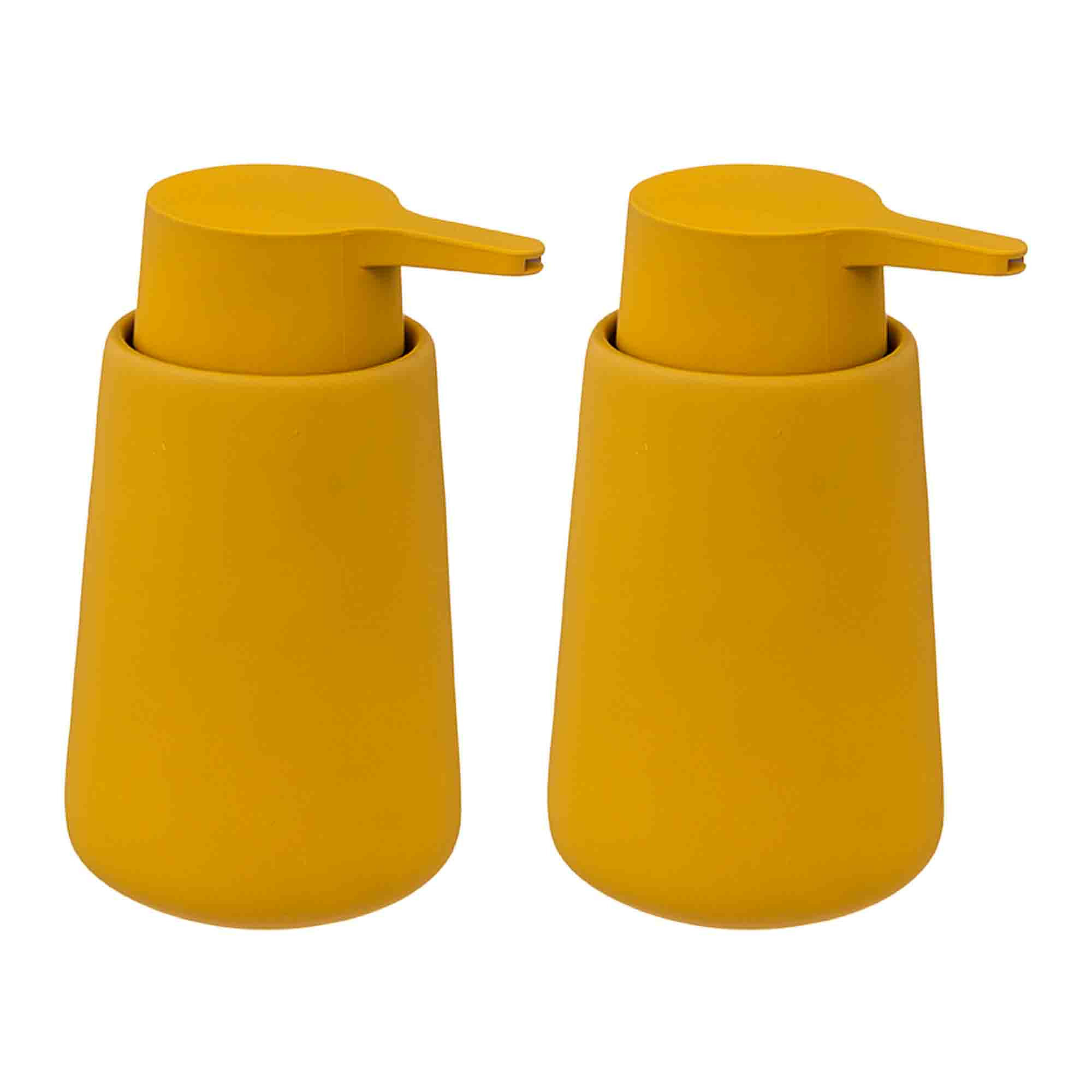 5Five Zeeppompje/dispenser – 2x – keramiek – geel – 250 ml – keuken/toilet –