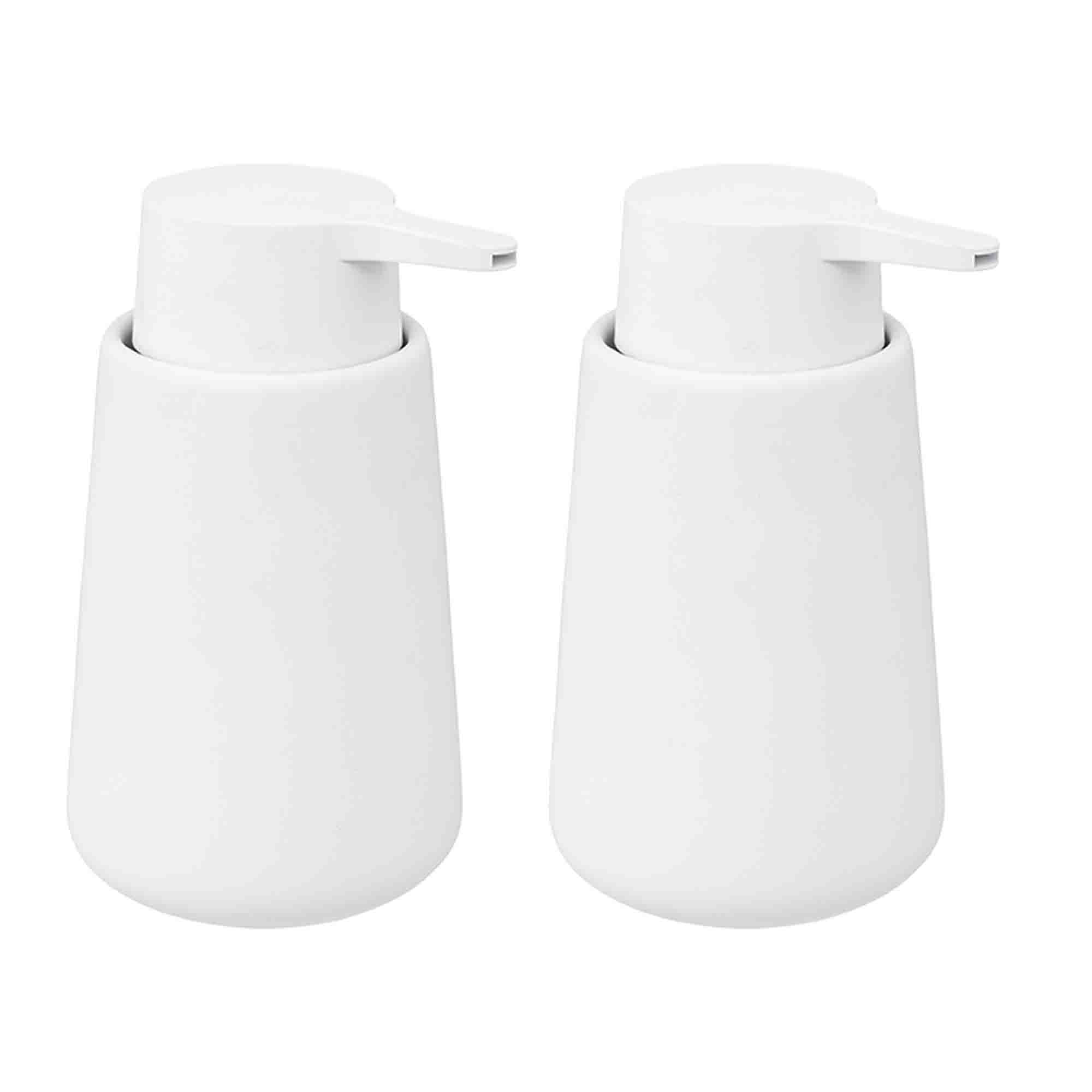 5Five Zeeppompje/dispenser – 2x – keramiek – wit – 250 ml – keuken/toilet –