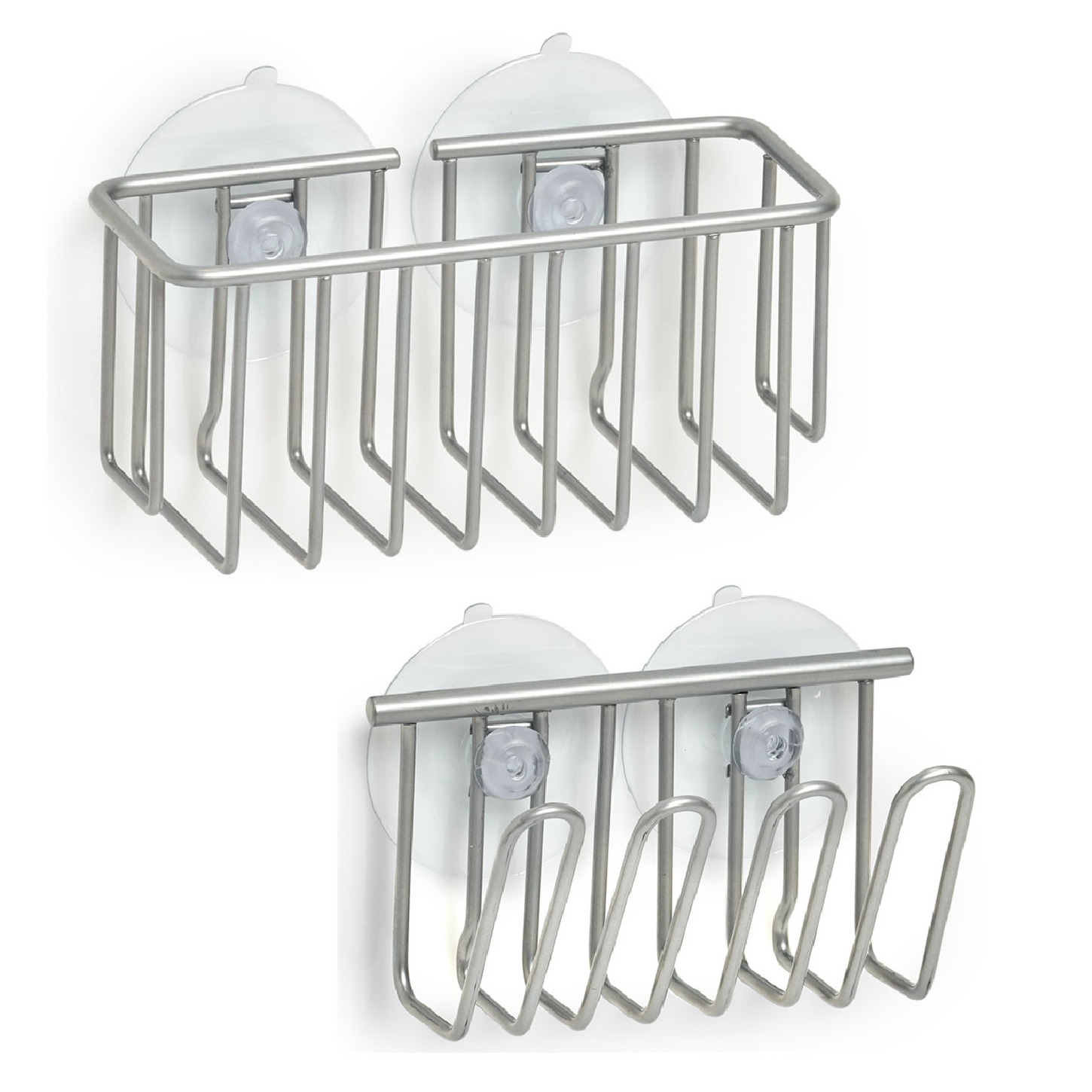 Afwasmiddel houder en spons houder metaal met zuignappen 2-delig