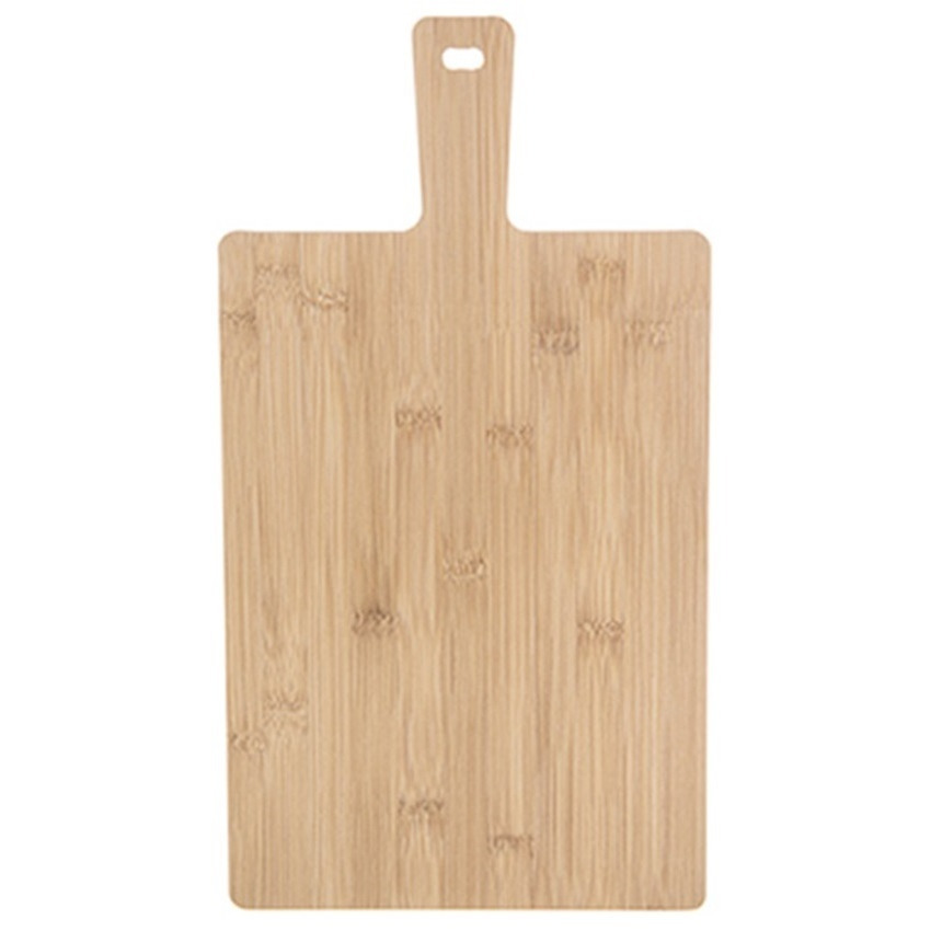 Robuuste snijplank/serveerplank van onbehandeld bamboe hout met stijlvol afgeronde hoeken, onmisbaar voor iedere chef. De plank is uitgerust met een handig handvat, waardoor je deze gemakkelijk kunt verplaatsen en hapjes kunt serveren. Ideaal voor het snijden van brood, groenten en fruit, maar ook perfect geschikt als borrelplank of tapasplank om je gasten te verrassen met een mooie presentatie van kazen, vleeswaren en andere lekkernijen. Afmetingen: 44 x 24 x 1 cm. Wasvoorschrift: enkel afnemen met water en beetje afwasmiddel. Merk: Alessandro.