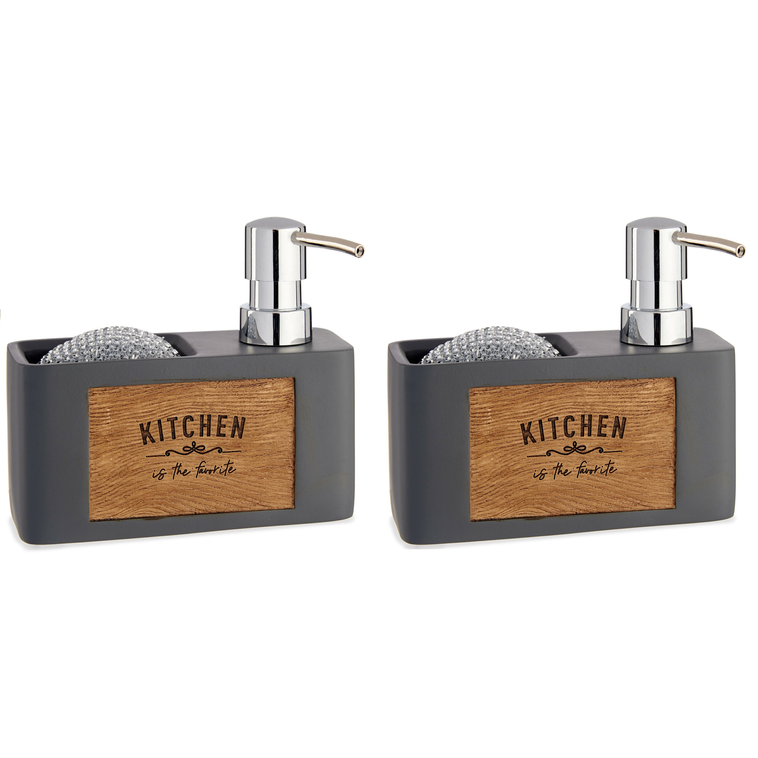 Arte R Zeeppompje/dispenser – 2x – met houder – kunststof hout – grijs –
