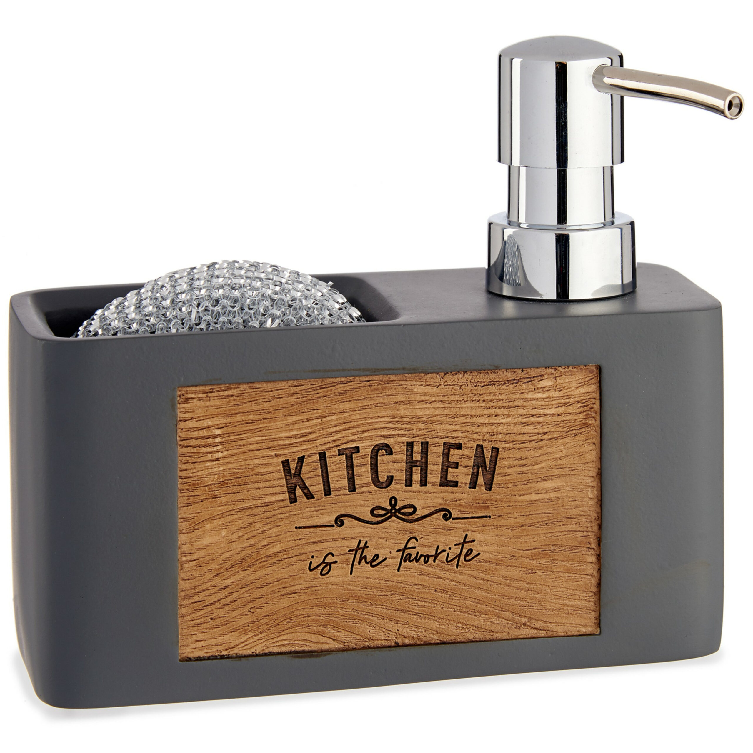 Zeeppompje met houder Dit navulbare zeeppompje is een praktische ?n stijlvolle toevoeging aan keuken, badkamer of toilet. Vul het eenvoudig met je favoriete handzeep, lotion of afwasmiddel en geniet van gemak in het dagelijks gebruik. Dankzij het herbruikbare ontwerp is het pompje keer op keer opnieuw te vullen, waardoor het niet alleen handig maar ook een mooie eyecatcher is in huis. Afmeting: ca. 15 x 6 x 13 cm. Dit zeeppompje is voorzien van een houder, wat geschikt is voor bijvoorbeeld een spons. Materiaal: kunststof/hout.