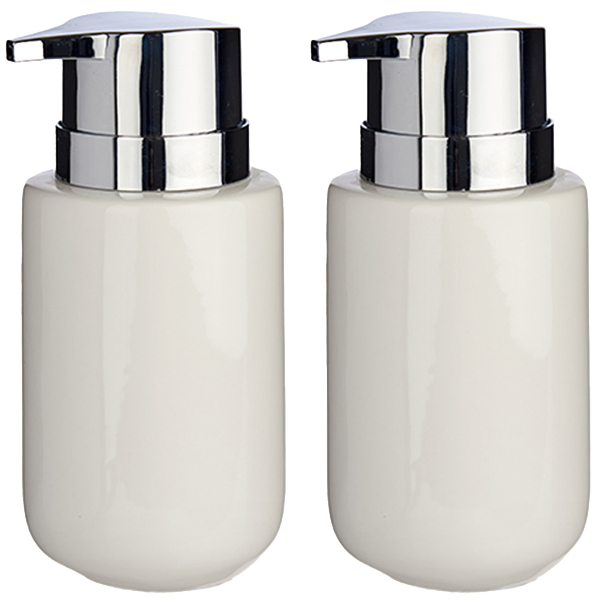 2x berilo zeeppompje van keramiek wit. Geef je dagelijkse routine een stijlvolle touch met dit navulbare zeeppompje. Of je het nu vult met handzeep, lotion of afwasmiddel: het pompje zorgt voor gemak en een opgeruimde uitstraling. Het navulbare ontwerp maakt het praktisch in gebruik en ideaal om steeds opnieuw te vullen met jouw favoriete producten. Een klein detail dat groot verschil maakt in elke ruimte. Diameter: ca. 8 cm. Hoogte: 14,5 cm. Inhoud: ca. 350 ml. Materiaal: keramiek.