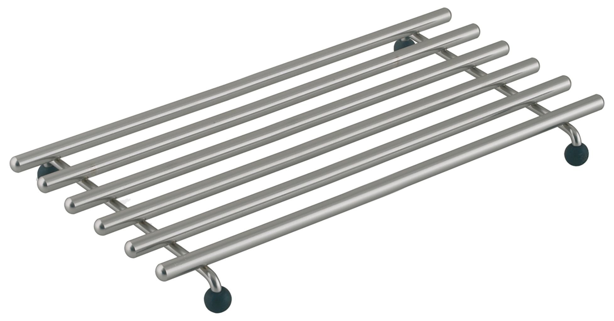 De BK onderzetters zijn gemaakt van roestvrij staal en ze vormen een solide en veilige basis voor hete pannen.Ze zijn licht van gewicht en makkelijk te plaatsen op elke ondergrond. De pootjes zijn gemaakt van kunststof met zwarte dopjes er aan vast. De dopjes zijn mooi functioneel voor bescherming van je aanrecht of tafel.De onderzetters zijn eenvoudig te reinigen in lauwwarm water met een mild afwasmiddel.