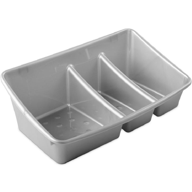 Grijze badkamerbak/houder kunststof 23 x 13 x 8 cm. Een ruime bak met 3 vakken, om in de badkamer te gebruiken, waar u o.a. flessen shampoo/zeep of haarborstels/cosmetica in kunt bewaren. Deze opbergbak is tevens zeer geschikt voor in de keuken, in de hobbyruimte of in de voorraadkast.