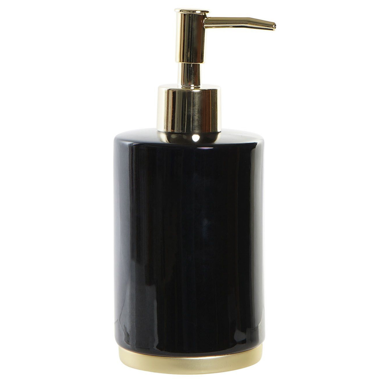 Zeeppompje/zeepdispenser zwart en goudkleurig. Dit navulbare zeeppompje is een praktische ?n stijlvolle toevoeging aan keuken, badkamer of toilet. Vul het eenvoudig met je favoriete handzeep, lotion of afwasmiddel en geniet van gemak in het dagelijks gebruik. Dankzij het herbruikbare ontwerp is het pompje keer op keer opnieuw te vullen, waardoor het niet alleen handig maar ook een mooie eyecatcher is in huis. Stevige zeep dispenser gemaakt van keramiek en metaal. Afmetingen: ca. 8 x 8 x 19 cm. Inhoud: ca. 350 ml.