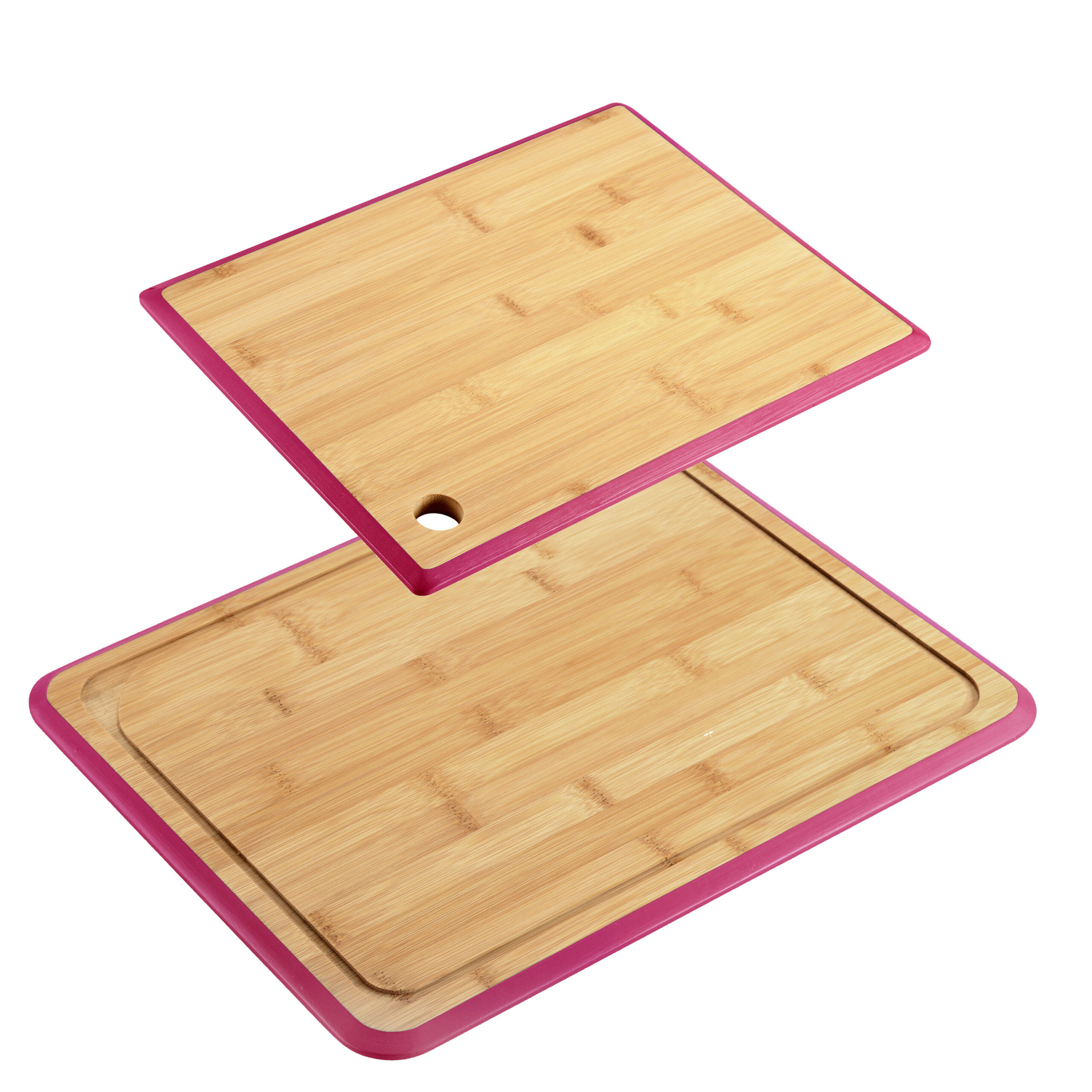 Keuken voedsel bereiden snijplanken voordeelset van 2x stuks, uit de Matterhorn serie, gemaakt van stevig lichtbruin bamboe hout met roode afwerking rand. Afmetingen: 27 x 19 x 1.5 cm en 40 x 30 x 1,6 cm. De snijplanken zijn voorzien van een oppak oog. Wasvoorschrift: enkel afnemen met water en beetje afwasmiddel. Deze snijplanken zijn van hoge kwaliteit en een lust voor het oog. Verkrijgbaar in meerdere kleuren en formaten. , Dit artikel bestaat uit:, 1x Keuken voedsel bereiden snijplank – 27 x 19 cm – bamboe hout – rode rand, 1x Keuken voedsel bereiden snijplank – 40 x 30 cm – bamboe hout – rode rand