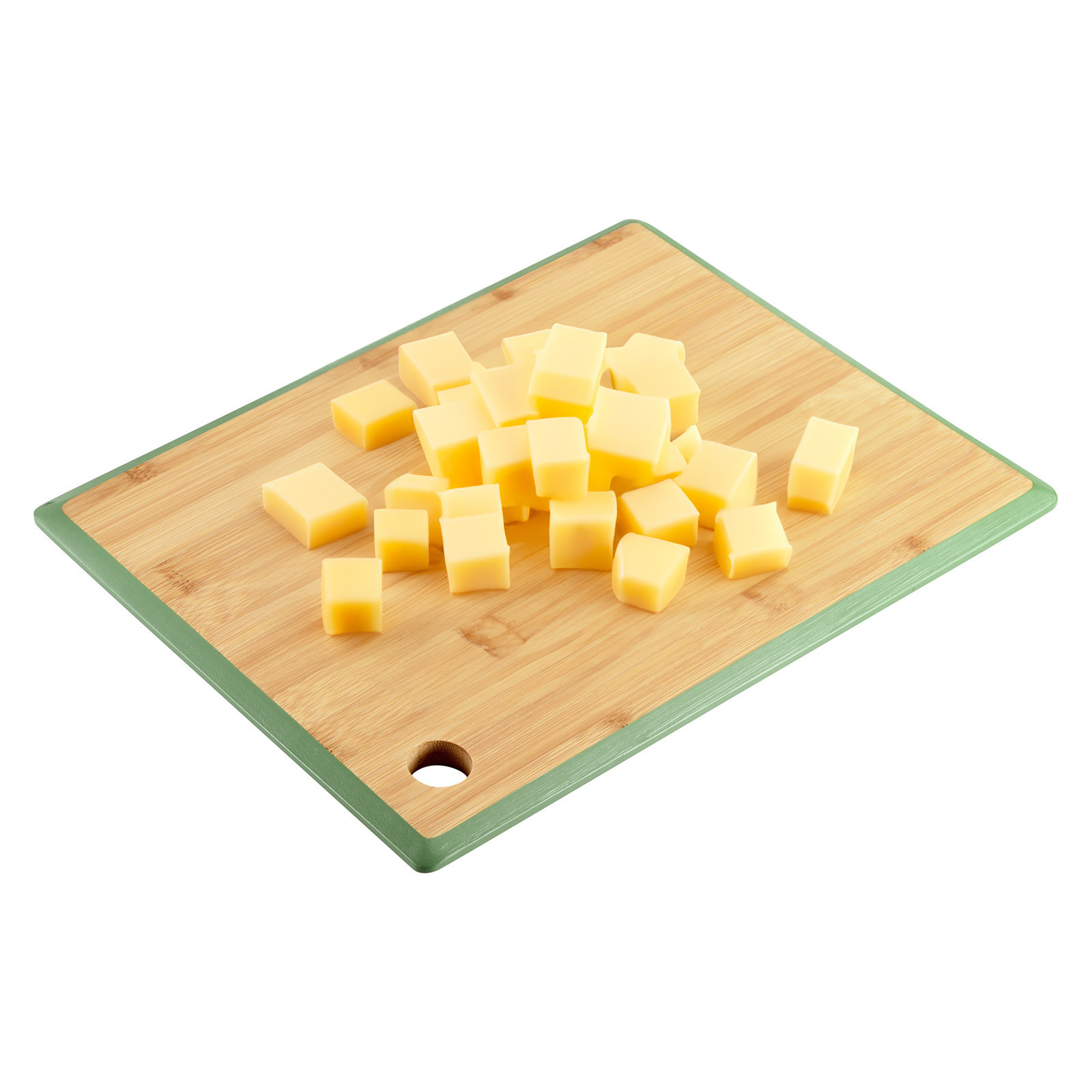 Keuken voedsel bereiden snijplank uit de Matterhorn serie, gemaakt van stevig lichtbruin bamboe hout met groene afwerking rand. Afmetingen: 27 x 19 x 1.5 cm. De snijplanken zijn voorzien van een oppak oog. Wasvoorschrift: enkel afnemen met water en beetje afwasmiddel. Deze snijplanken zijn van hoge kwaliteit en een lust voor het oog. Verkrijgbaar in meerdere kleuren en formaten.