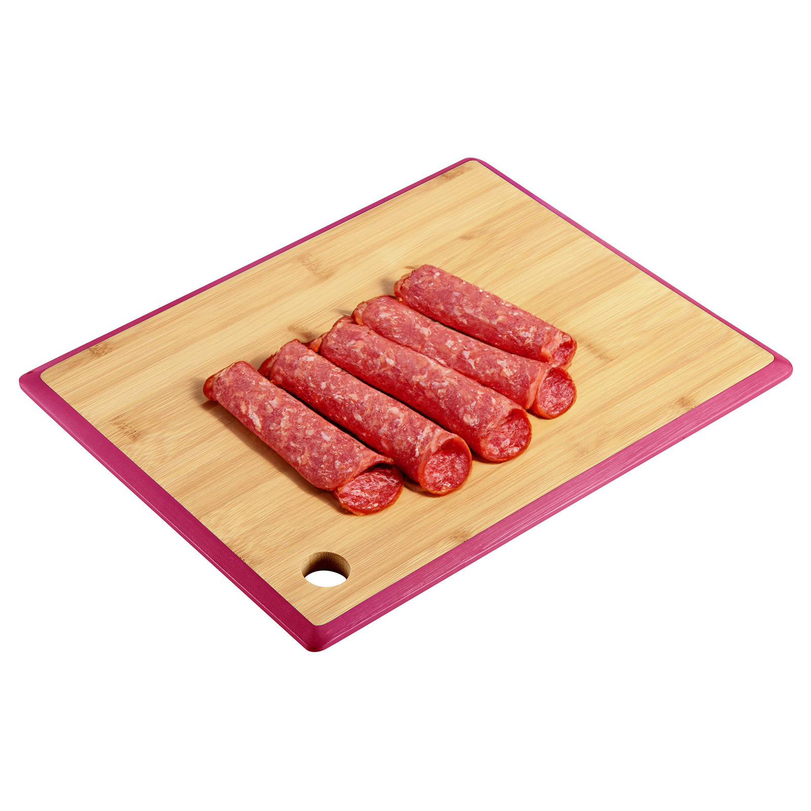 Keuken voedsel bereiden snijplank uit de Matterhorn serie, gemaakt van stevig lichtbruin bamboe hout met rode afwerking rand. Afmetingen: 23 x 15 x 1 cm. De snijplanken zijn voorzien van een oppak oog. Wasvoorschrift: enkel afnemen met water en beetje afwasmiddel. Deze snijplanken zijn van hoge kwaliteit en een lust voor het oog. Verkrijgbaar in meerdere kleuren en formaten.