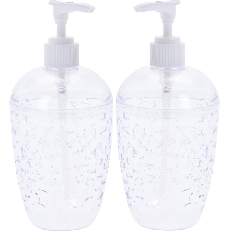 2x een transparant zeeppompje, met waterdruppel design. Geef je dagelijkse routine een stijlvolle touch met dit navulbare zeeppompje. Of je het nu vult met handzeep, lotion of afwasmiddel: het pompje zorgt voor gemak en een opgeruimde uitstraling. Het navulbare ontwerp maakt het praktisch in gebruik en ideaal om steeds opnieuw te vullen met jouw favoriete producten. Een klein detail dat groot verschil maakt in elke ruimte. Afmeting: ca. D8 x H18 cm. Materiaal: kunststof.