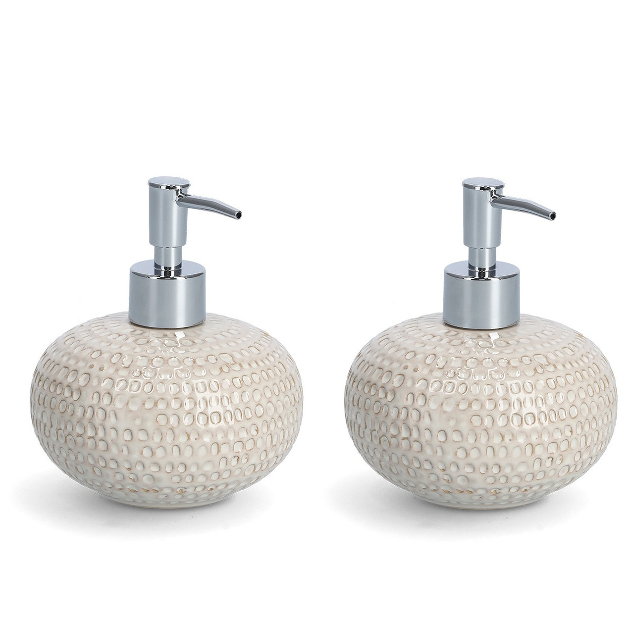 Zeeppompje/dispenser keramiek – 2x – beige – 12 x 13 cm – Structure