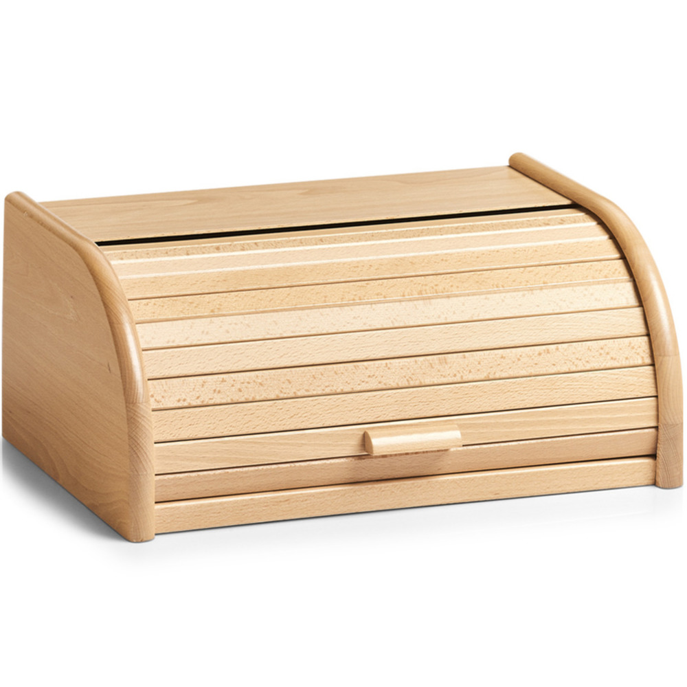 Houten luxe broodtrommel met klep/deksel 40 cm. Een robuuste broodtrommel bewaardoos met een stevige rolklep/deksel. De broodtrommel kan eenvoudig worden gesloten en geopend met de geintegreerde handgreep. Geschikt voor alle formaten brood.